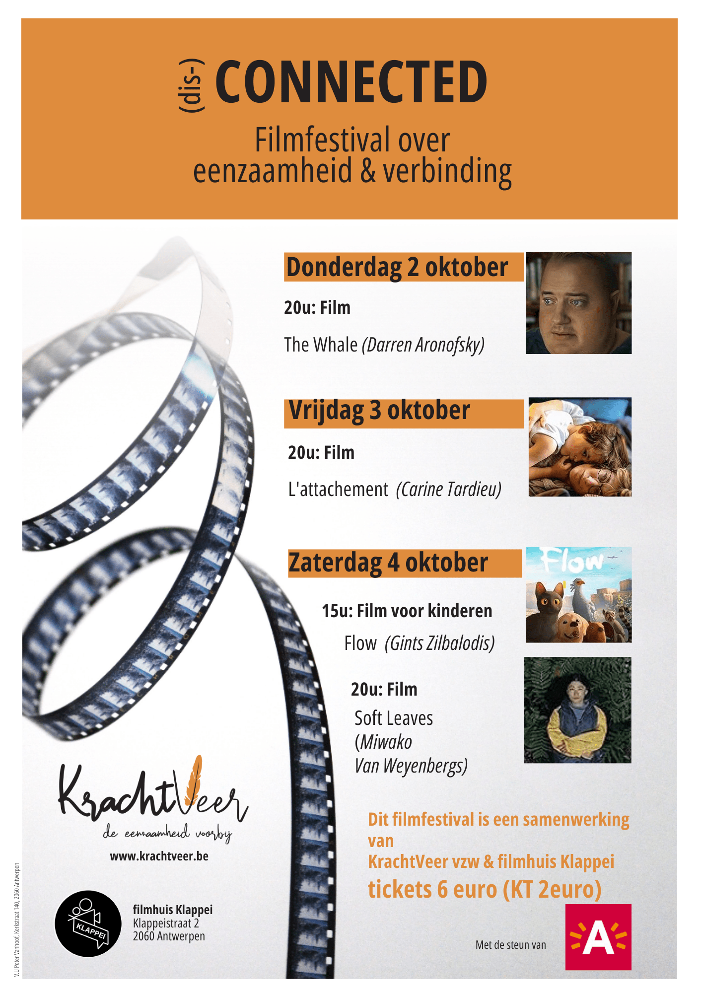 Op maandagmiddag van 13.30 tot 16.30 uur, op 6, 13, 20 oktober, 3, 10, 17, 24 november, 1, 8 en 15 december, Filmhuis Klappei, Klappeistraat 2, 2060 Antwerpen